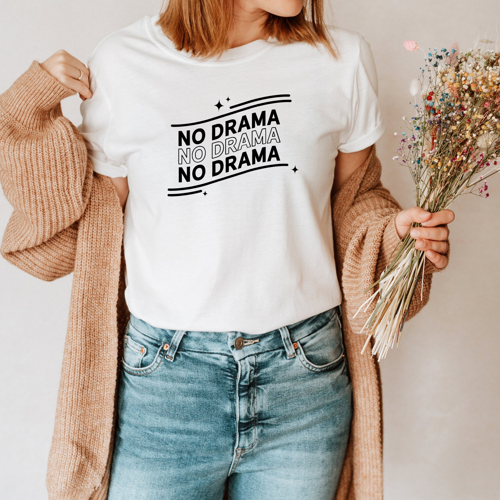 The No Drama T-Shirt comes in 2 colors, black or white!